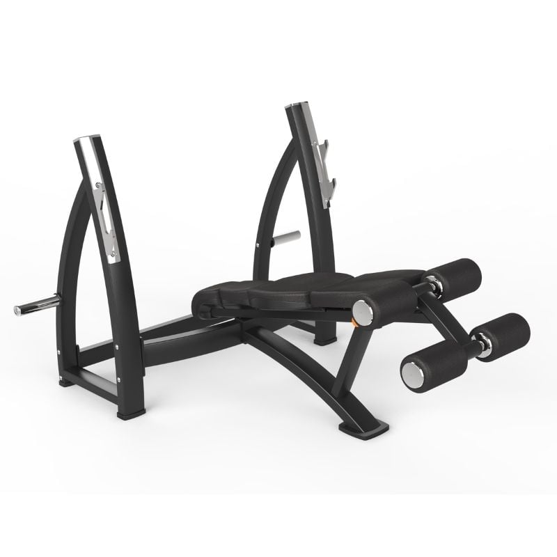 The YR Fitness 7340 Olympic Decline Bench supports effective decline chest training with solid construction and ergonomic comfort. Designed to promote proper form and user safety during heavy pressing movements.